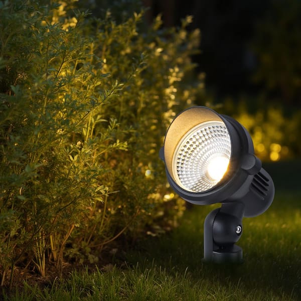 Black Aluminum Integrated LED Outdoor Spotlight with Adjustable Lamp Head